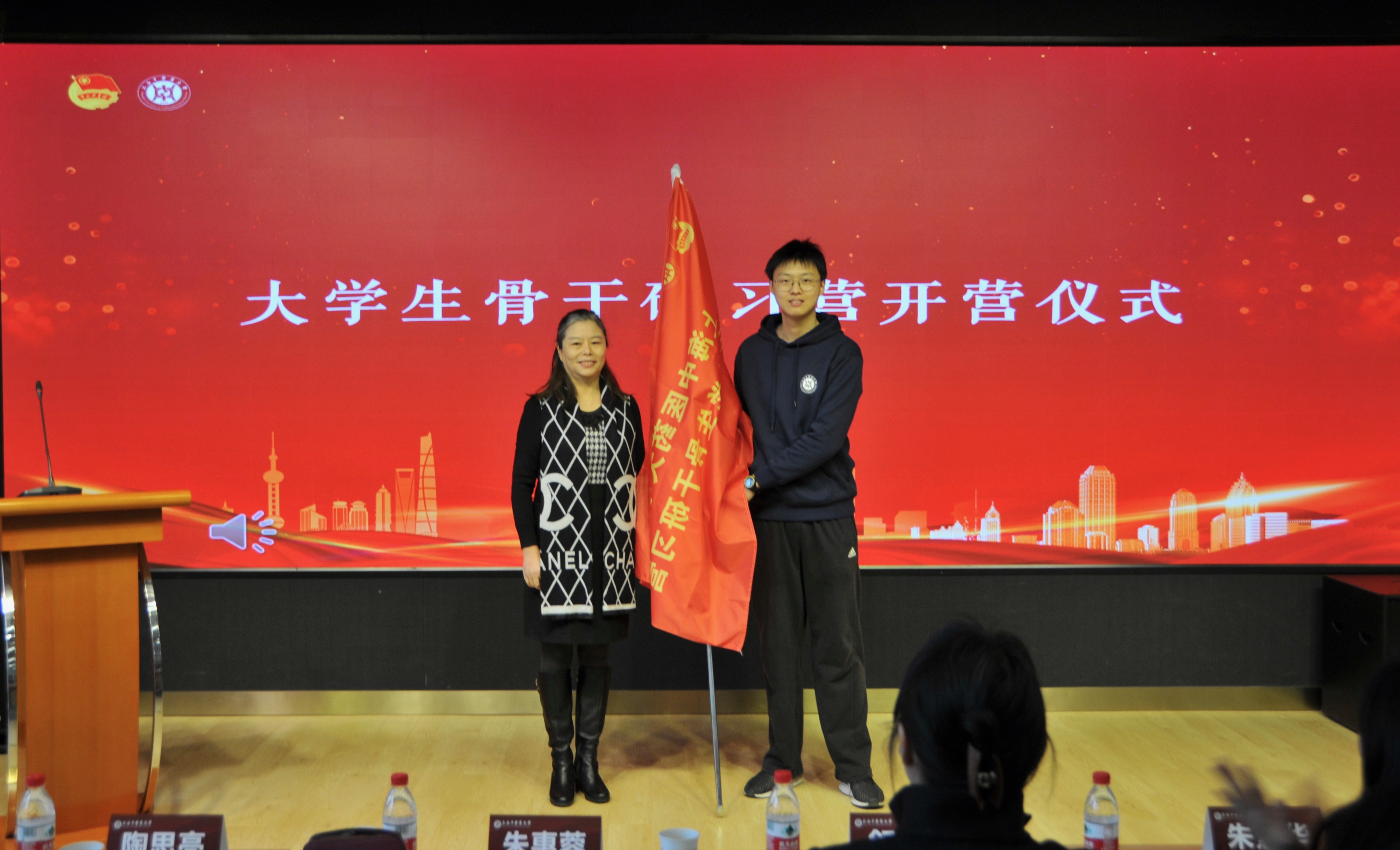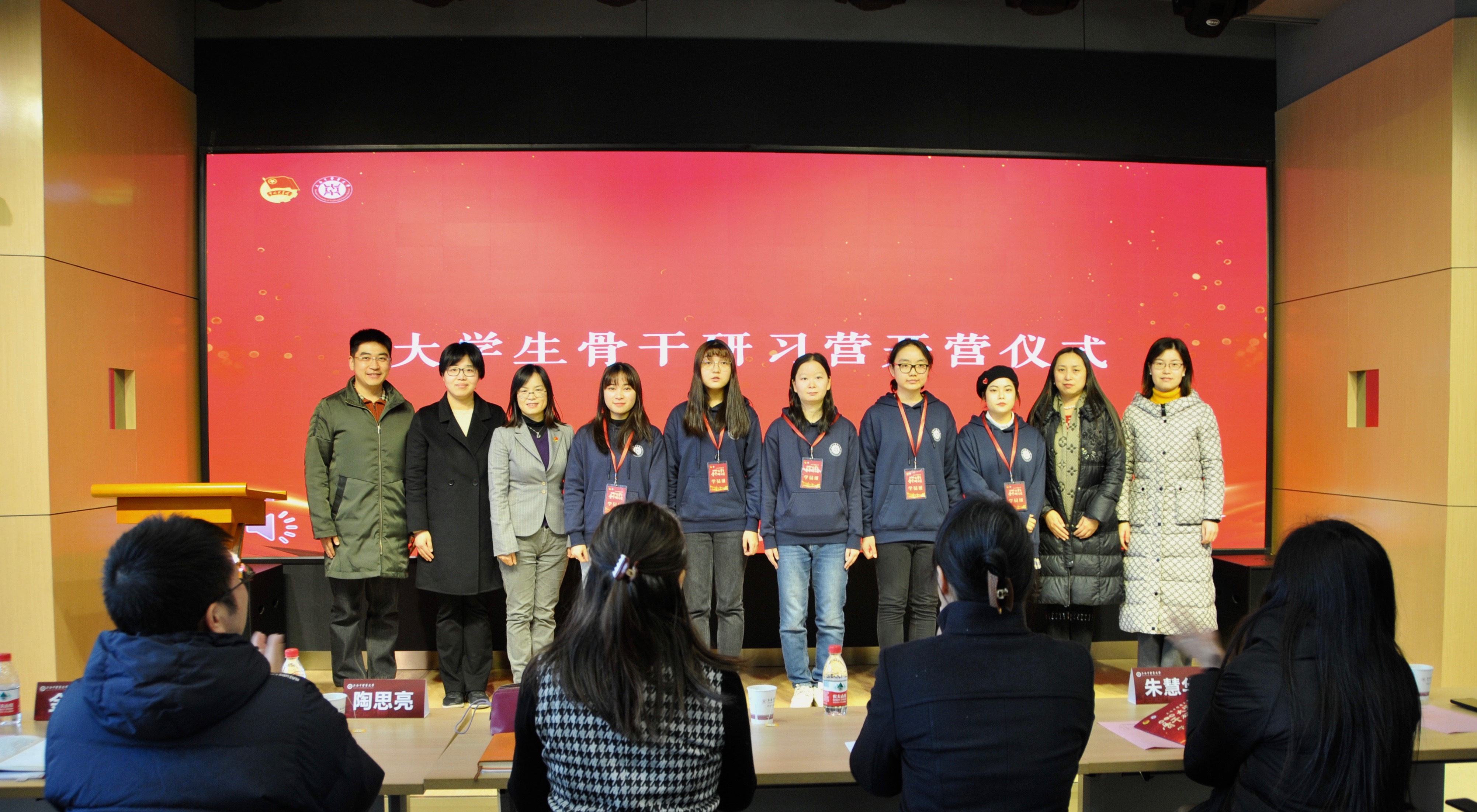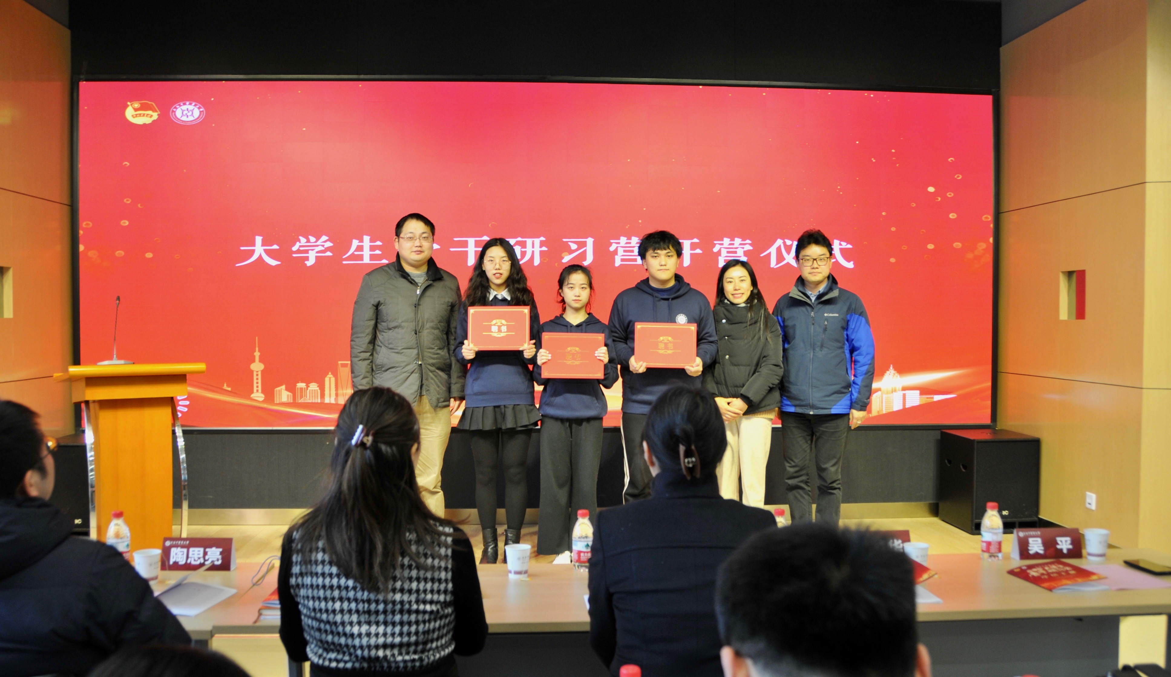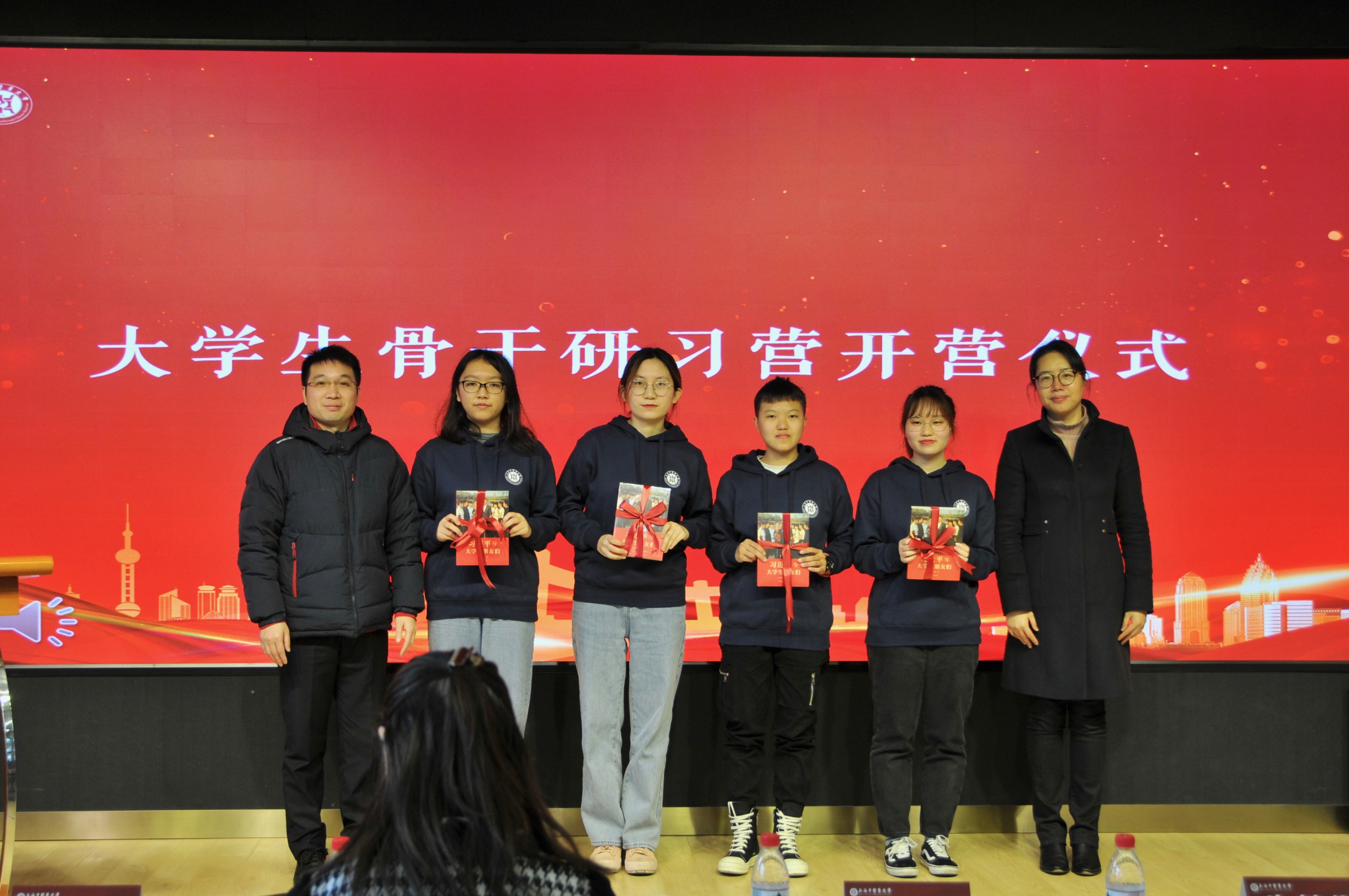 仪式伊始,万婕介绍本次大学生骨干研习营的相关课程内容。本次研习营学员覆盖面更广、教学内容更全面、教学计划更完善,共招募97名营员,旨在通过更为合理化、科学化、专业化、导向化的培训,进一步提高学生骨干的思想政治素养、政策理论水平、创新实践能力和组织协调能力。沈漫、马杰、张瑛、干旦峰、毕亚男为此次大骨班学员代表佩戴学员证。