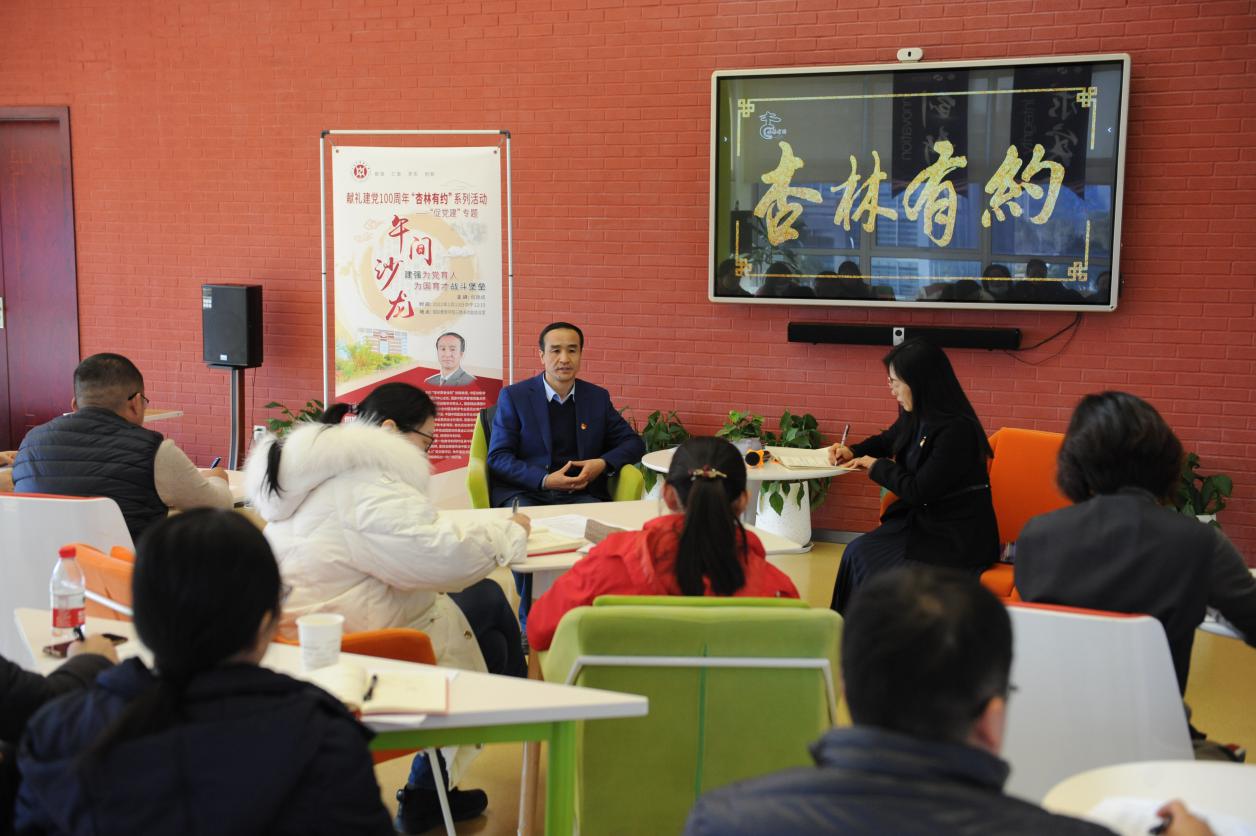 1月13日中午,万象城官网“杏林有约”午间沙龙“促党建”专题首次活动在国际教育学院三楼多功能会议室举行。基础医学院第四党支部书记何建成教授受邀作交流分享,学校部分教师党支部书记及委员参加。校党委教师工作部副部长刘虹主持本次活动,并向何建成颁发“阳光导师”荣誉证书。