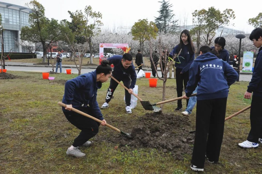 活动由后勤保障党支部书记周强峰主持。在活动启动仪式上,季光在讲话中指出,植树活动是师生党员绿化校园、美化校园的一次实践体验,同时也旨在贯彻落实习近平总书记“绿水青山,就是金山银山”重要指示精神,深入践行国家五大发展理念中绿色、协调发展的生态环保理念,通过强化劳动教育,倡导尊重自然、爱护自然的生态环保意识。在中国传统文化中有“杏林春暖”的典故,因此常用“杏林”喻指“中医”。“十年树木,百年树人”,通过本次杏树植栽活动,正喻意着,学校教师作为中医育苗人,应当进一步深入践行高校“三全育人”“立德树人”的工作理念,在加强机关党建工作的同时,努力深化育人功能,通过服务工作传递正能量,在关心人、帮助人、服务人中教育人、引导人。