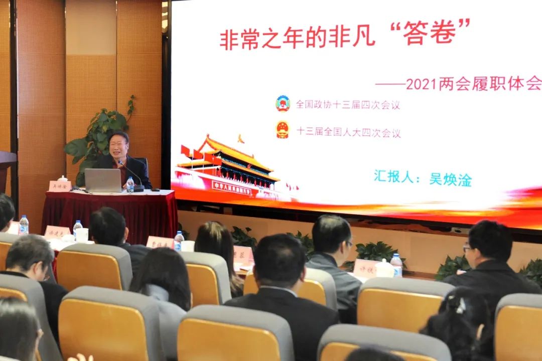 全国政协委员、上海市针灸经络研究所所长吴焕淦以“非常之年的非凡‘答卷’”为题畅谈自身参加全国两会的履职体会。他向与会人员传达全国两会概况,重点介绍政府工作报告释放的八大信号,包括“‘十四五’期间着重提升发展质量效益,坚持创新驱动,高质量供给引领和创造新需求”等。他还介绍了围绕中医药人才培养等主题提出的4个提案《关于以校园文化建设为抓手推动教师思想政治工作的建议的提案》《关于进一步促进中医药标准化人才体系建设建议的提案》《关于加强中医传染病学科建设与人才培养建议的提案》《关于调整假日拉动旅游消费,促进经济内循环的提案》,介绍其参政议政情况。