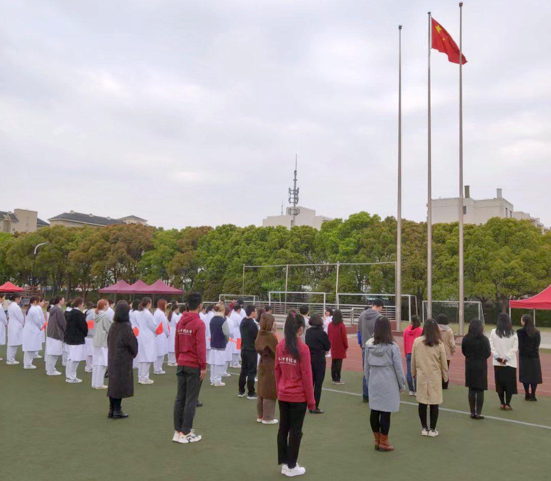 4月15日早晨,万象城官网“早安国旗”国家安全教育日升旗仪式和理想信念教育活动在体育场举行,学生工作党总支、保卫处和护理学院部分师生参加。