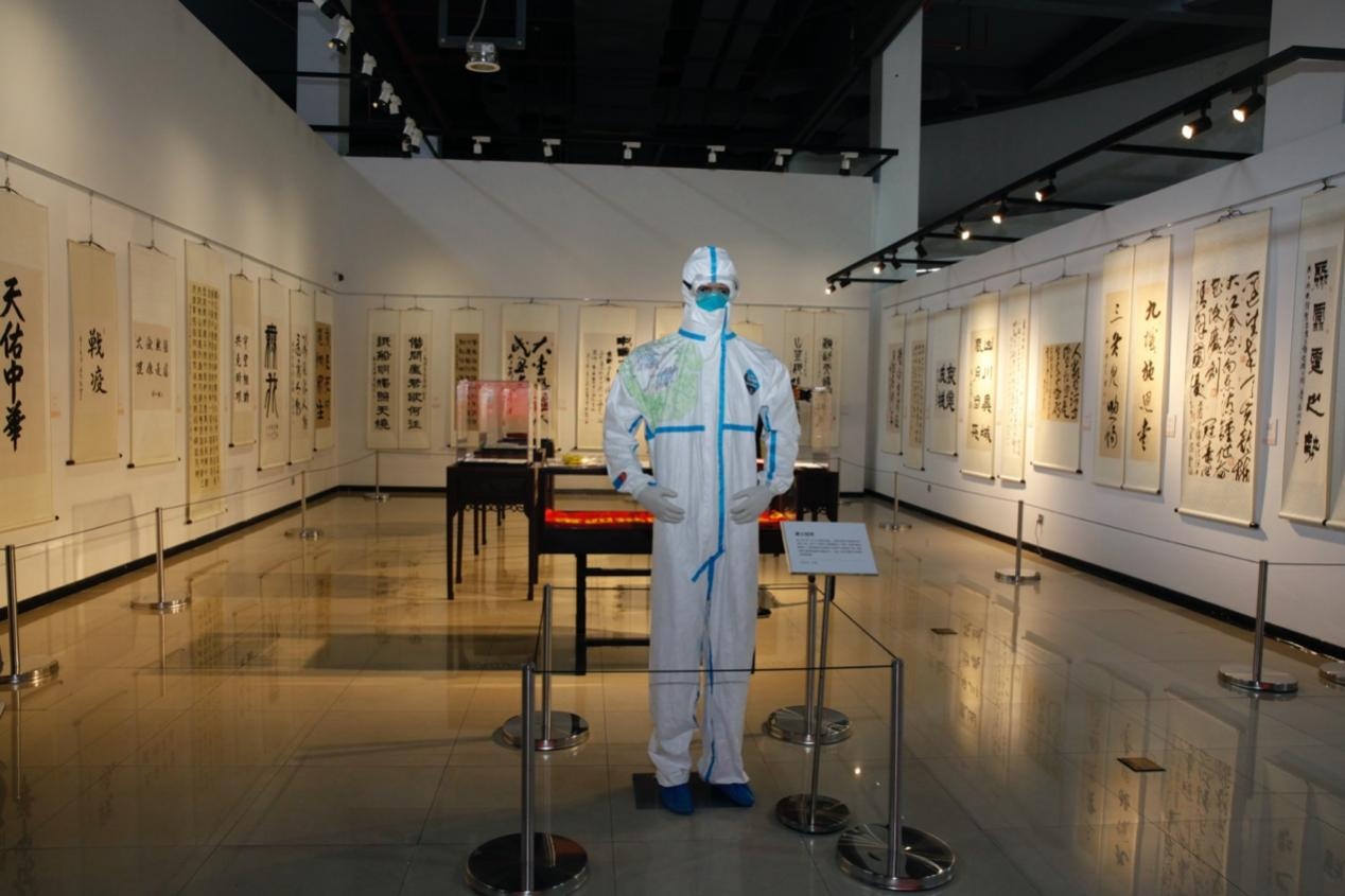 展览分两部分呈现。书画作品从上海文化艺术品鉴促进会、上海中国书法院所提供的众多作品中遴选,创作者包括海内外书画名家以及中宣部、上海市委市政府老领导、老同志等,通过贴近生活的艺术创作表达他们对此次抗疫经历的所思所想。展出藏品则来自上海中医药博物馆馆藏、多位中医药界知名人士作品,以及博物馆向社会各界,尤其是学校系统教师、医务人员及学生所征集的抗“疫”见证物。如今,这些展品与大家首次见面,不仅展示了这场“战疫”所留下的历史印记,也从侧面见证了上海中医人岐黄仁心、合力抗疫的历史片段和精神风貌,成为学校系统师生深入推进党史学习教育的精神养分。