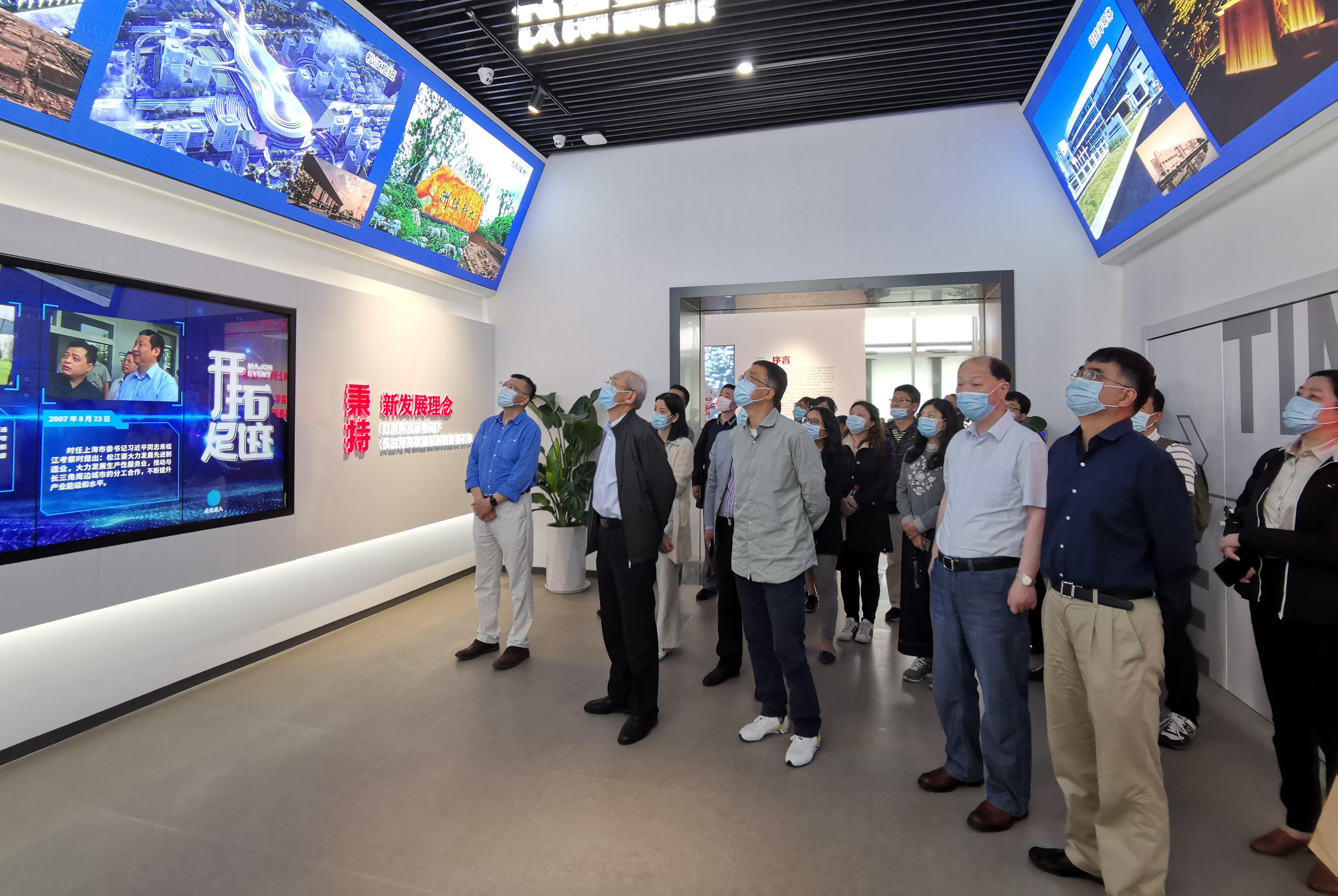 一行人首先来到G60长三角科创走廊规划展示馆,在发展历程、科技创新、制度创新、党建引领四个展厅,全面了解松江区近年来在高端人才引进、产业升级转型、创新技术研发等方面的战略部署、实施举措和取得的成果,生动感受从“松江制造”向“松江创造”迈进的历史性进程。