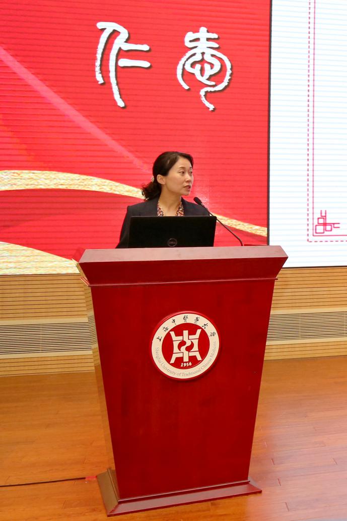 交流展示环节,附属岳阳中西医结合医院《绽放精神文明之花,熔铸医院发展之魂——岳阳医院精神文明亮点工作汇报》视频生动呈现了医院以党建引领助推医院全面发展,以优质高效提升医疗质量内涵,以深化教改聚焦课程思政建设,全力创建第六届全国文明单位的过程。附属普陀医院党委副书记梁娅介绍“健康医点通”志愿服务项目,该项目围绕“大健康”理念,集中医院力量,加强资源整合,开辟了专家“医”讲堂等五大版块的志愿科普服务,为提高普陀区及周边地区人民群众健康素养作出贡献。上海中医药博物馆馆长、党支部书记李赣展示了博物馆作为全国中医药文化宣传教育基地,在以教师党支部引领工程创建“文化育人”党支部、以“文创”产品研发讲好中医药文化故事、以“三全育人”共享基地为平台做好大中小一体化文化传承等方面取得的成效。