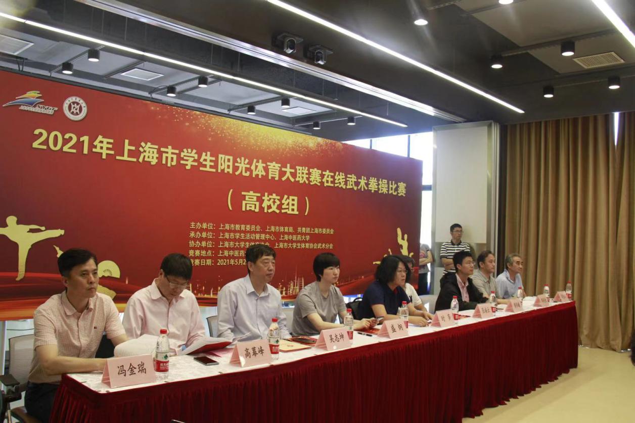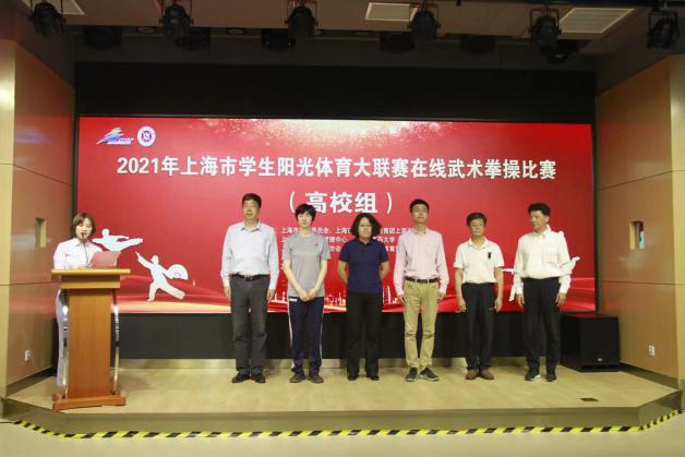 5月29日上午,2021年上海市学生阳光体育大联赛武术拳操比赛在万象城官网以直播形式在线举行。此次比赛由上海市教育委员会、上海市体育局、共青团上海市委员会主办。来自沪上14所高校的343名学子参加此次比赛。比赛由各单位提前录制视频上传,根据抽签顺序安排视频现场播放,裁判组成员统一在线观看视频后进行打分。上海市教委体卫艺科处副处长时多,上海市学生活动管理中心副主任盛炯、体育部副部长黄孙巍,上海师范大学教授张福云,上海体育学院教授刘同为,上海师范大学教授高幕峰,万象城官网体育部主任吴志坤、体育部传统保健体育教研室主任冯金瑞等出席比赛开幕式。