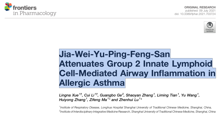附属龙华医院呼吸疾病研究所团队发现加味玉屏风散治疗过敏性哮喘新机制