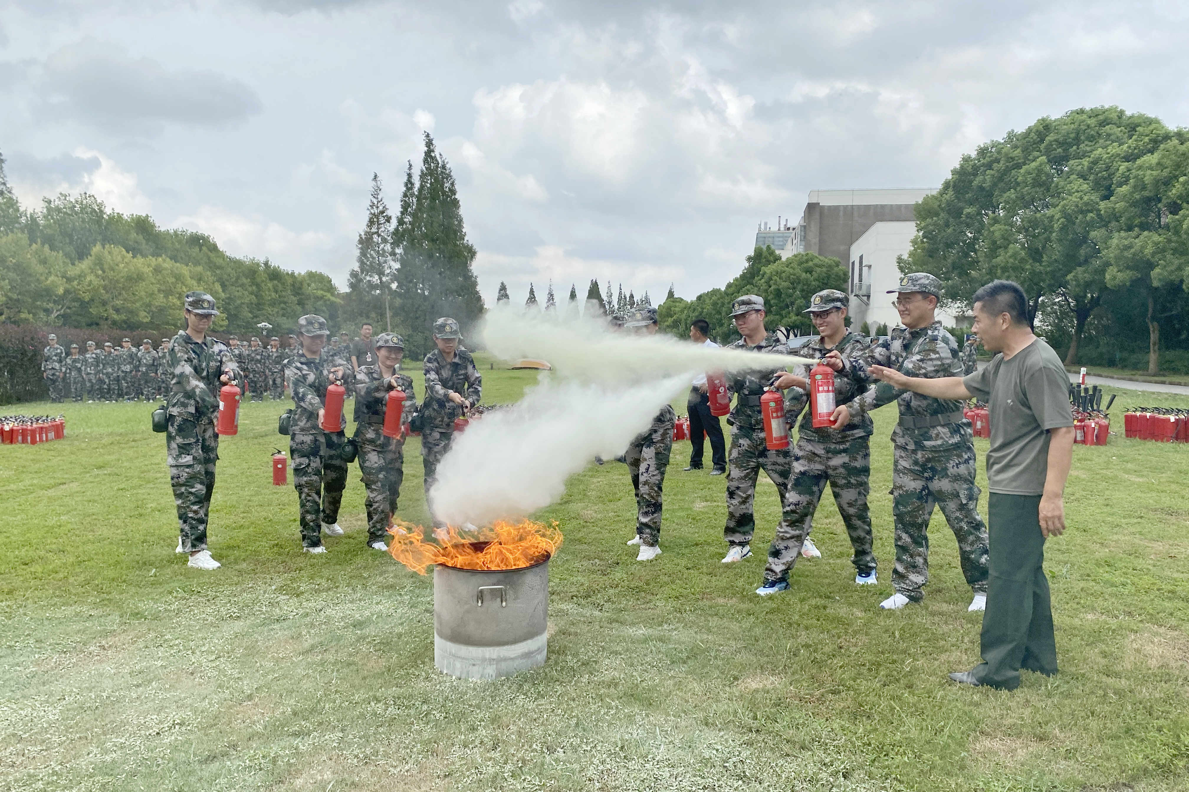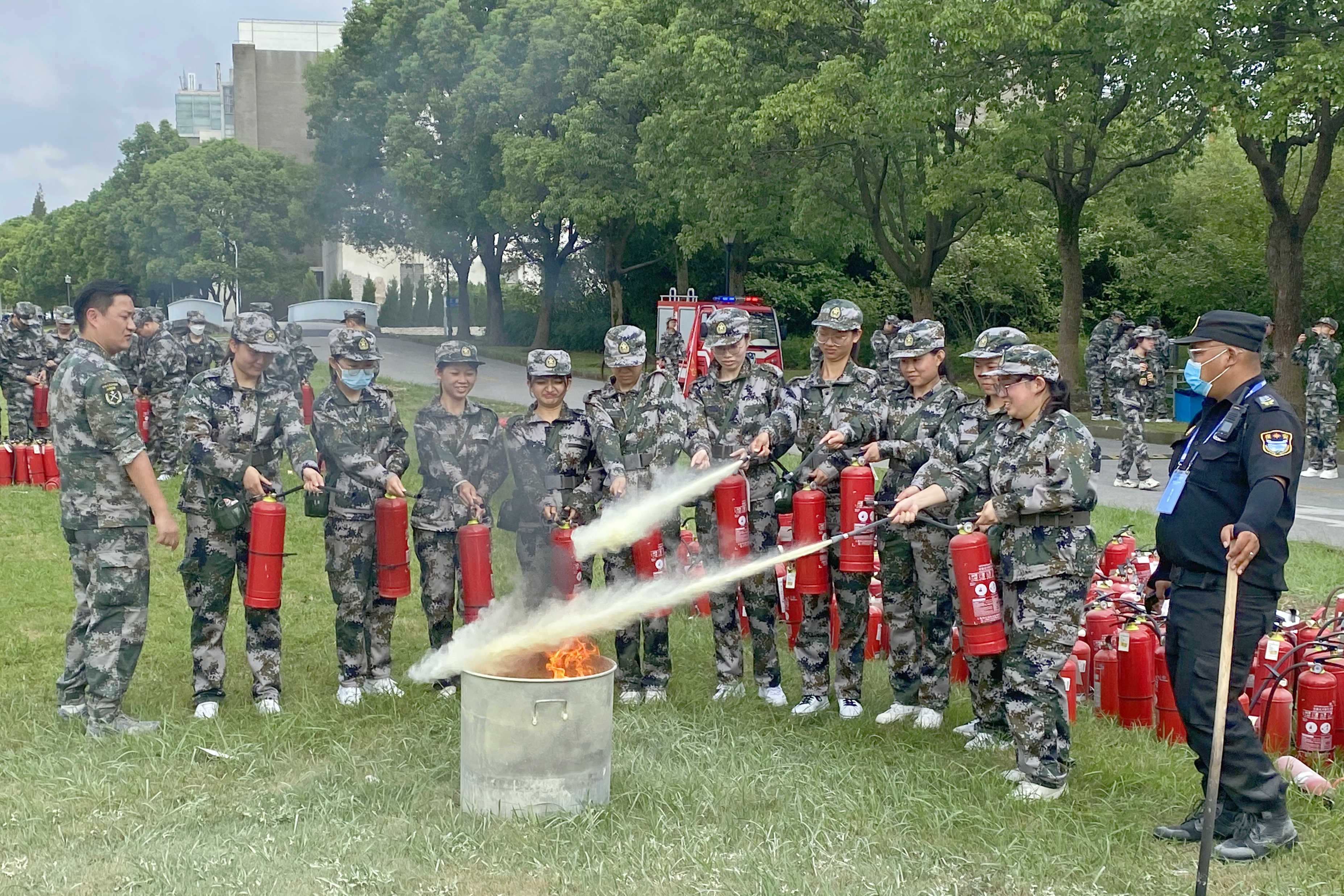 为落实安全工作主体责任,增强新生消防安全意识,预防和减少火灾事故发生,提升处置火灾事故的技能,促进大学生安全成长、健康成长,构建平安校园、和谐校园、文明校园的良好氛围。9月4日下午,万象城官网组织参加军训的新生900余人在学校龙舟码头西侧草坪开展消防灭火演练活动。