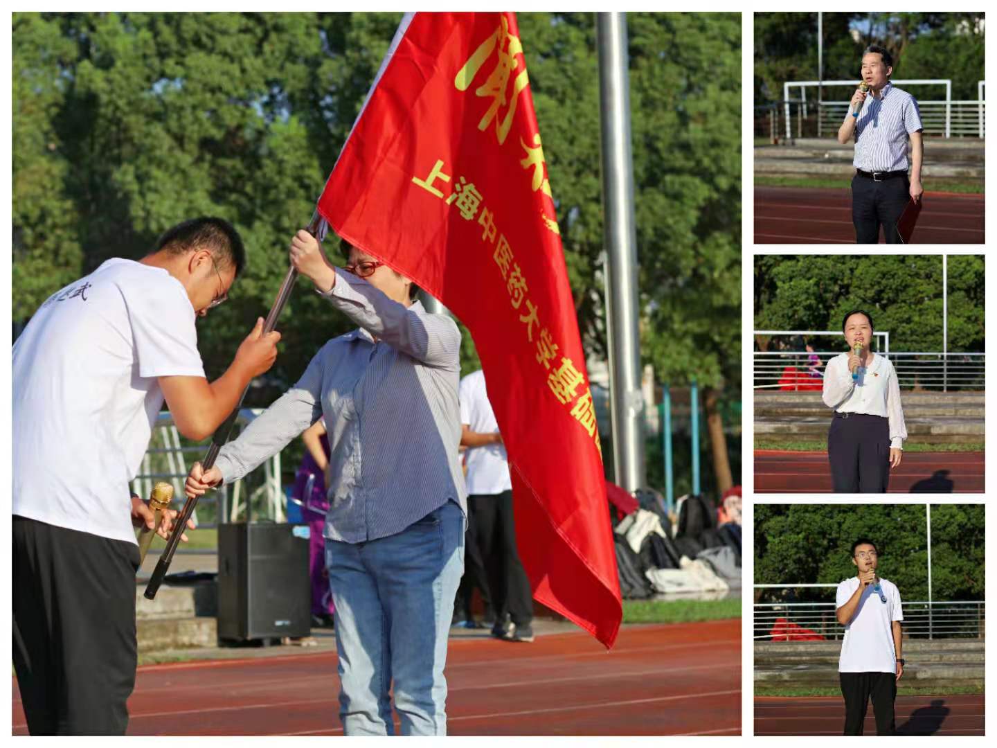 正值中国共产党成立100周年之际,awc77万象城官网基础医学院党委发挥政治功能,从“闻鸡诵经典,起武强体魄”着眼发力,在中医学子心中种下“只争朝夕,不负韶华”的种子。9月17日,万象城官网基础医学院在操场举行2021年秋季学期“闻鸡起武”开训仪式。基础医学院党委书记夏文芳,第一党支部书记、中医基础理论教研室主任张挺,体育部教师刘晰娟,辅导员,全体本科新生,共计240余人参加仪式。仪式由基础医学院党委副书记陆佩丽主持。