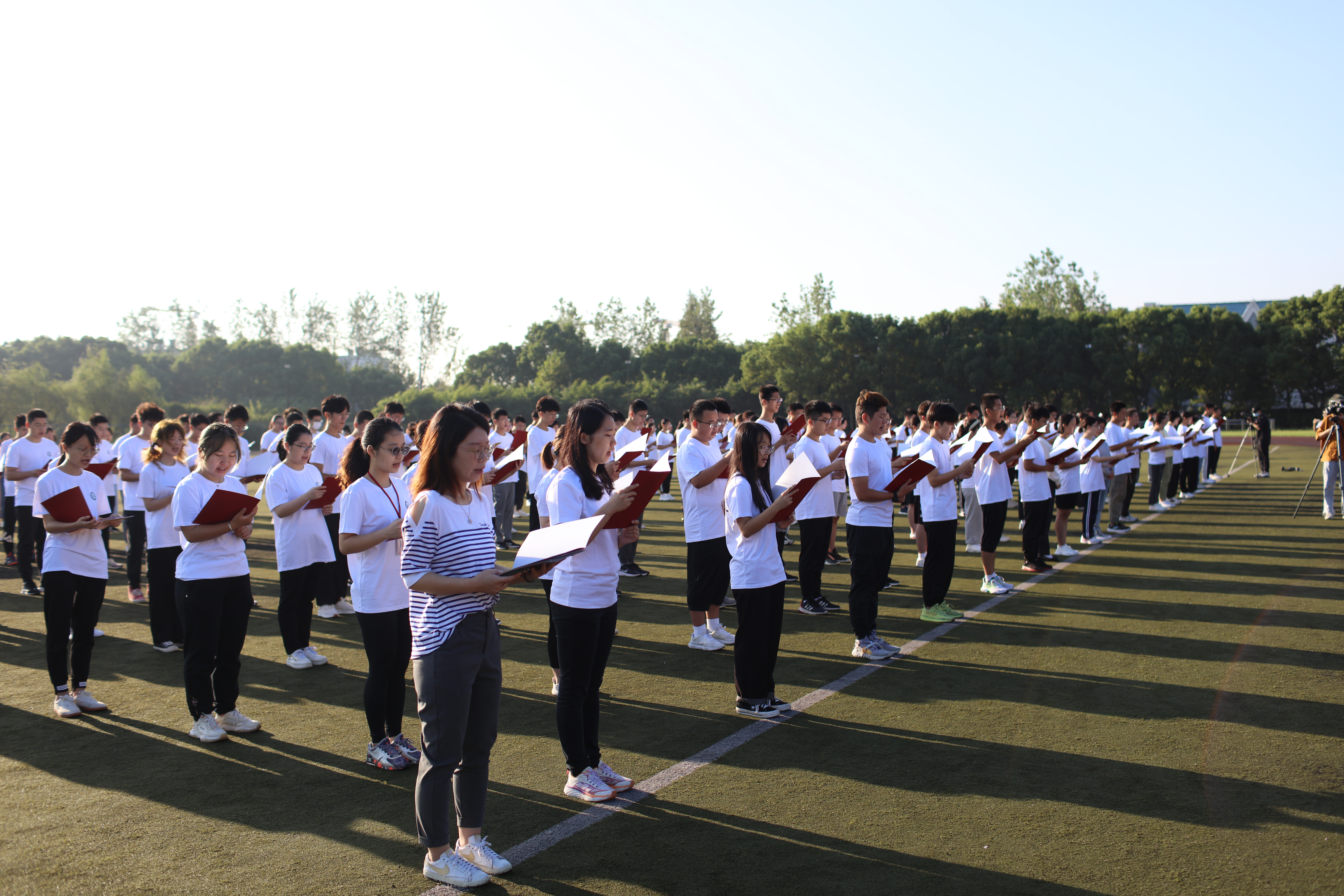 随后,夏文芳宣布开训,并为“闻鸡起武”授旗。2021级新生代表常睿发接旗,他号召全体学生:“不负青春、不负韶华、不负时代,为实现中医梦、强国梦贡献力量!”《黄帝内经》《伤寒论》《金匮要略》《温病学》等中医经典是中医学基本理论源泉,是中医药文化的瑰宝。开训前,学校终身教授段逸山和王庆其分别为学生送上锦囊:“诵读经典,探求真义,会通临床。”“不读经典,头重脚轻根底浅。不通临床,嘴尖皮厚腹中空。”开训仪式上,张挺为学生作经典导读:“如果把中医学比作一条河流,中医经典便是源头,为有源头活水来。如果把中医学比作一座山峰,中医经典便是登山的捷径,书山有路勤为径。如果说中医是一个武林高手,中医经典便是任督二脉,打通了它,可让你武力倍增、精气十足。”青年教师班主任薛辉和胥孜杭分别勉励中医学子:“经典学习,对于培养中医思维,更好地理解中医,并用之于临床,大有裨益。”“诵读经典,会让每一位参与其中的中医学子不仅能感受到中医文化的博大精深、底蕴浑厚,而且能初步体验到中医治病不治已病治未病的奇妙所在。”开训仪式最后,2021级全体新生在张挺带领下齐声诵读孙思邈所著《大医精诚》,体悟经典的力量。开训仪式后,沐浴着清晨的第一缕阳光,刘晰娟带领杏林学子们勤习功法,强筋壮骨。