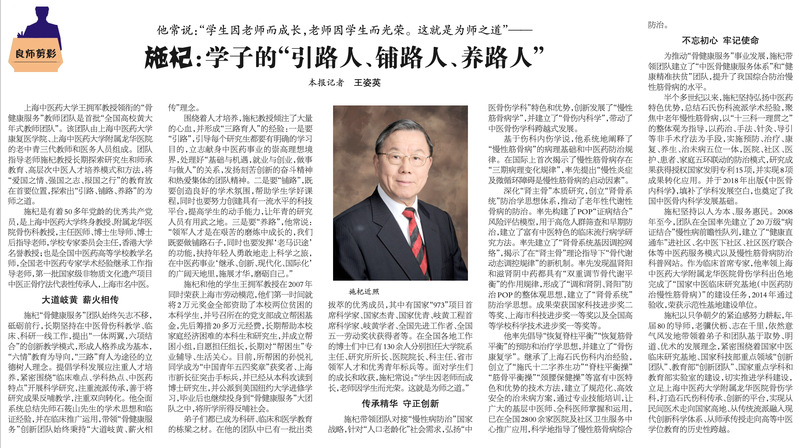 中国中医药报:施杞:学子的引路人、铺路人、养路人”