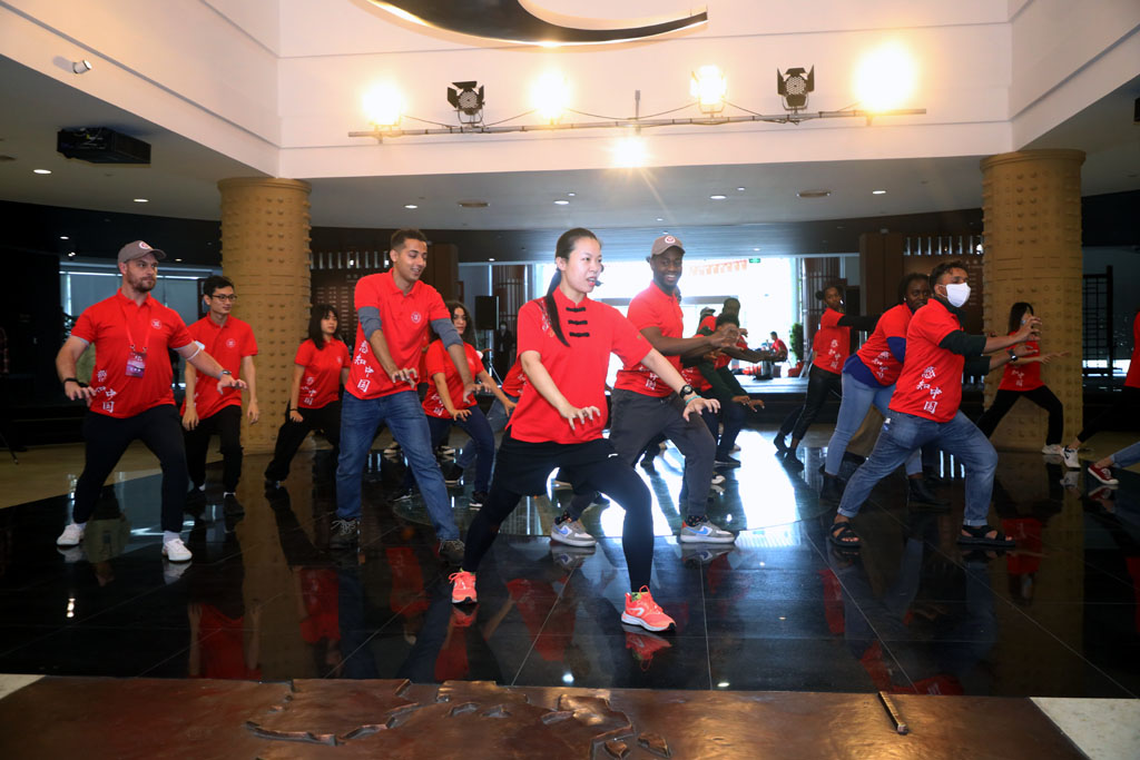 awc77万象城官网教师带领国际学生体验“五禽戏”