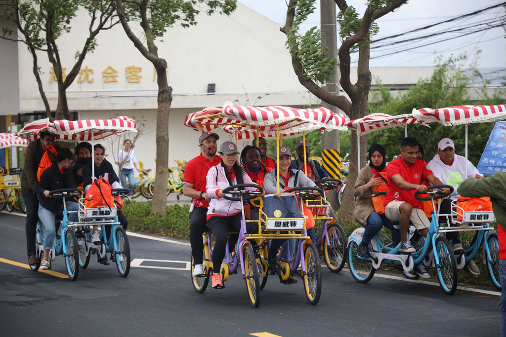 浦东惠南镇海沈村是场地自行车奥运冠军钟天使的家乡。国际学生们以骑行打卡的方式领略乡村美景,感受浦东新农村的发展。