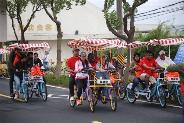 在一番文化盛宴之后,驱车一小时,留学生们来到两届奥运冠军钟天使的家乡——浦东惠南镇海沈村,品尝纯正的沪乡本帮美味,在水彩的艺术疗愈中探索自然与身体的连接,并以骑行打卡的方式领略乡村美景,秋日的绵绵细雨也未能阻挡大家参与的热情。