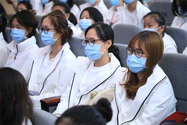 校党委副书记朱惠蓉勉励各位中医“小叶子”,要牢记志愿初心、实现服务零距离,在志愿服务的过程中,做好自我保护、增强学习意识,遵守场馆规则和工作纪律,要承担起新时代青年的责任。
