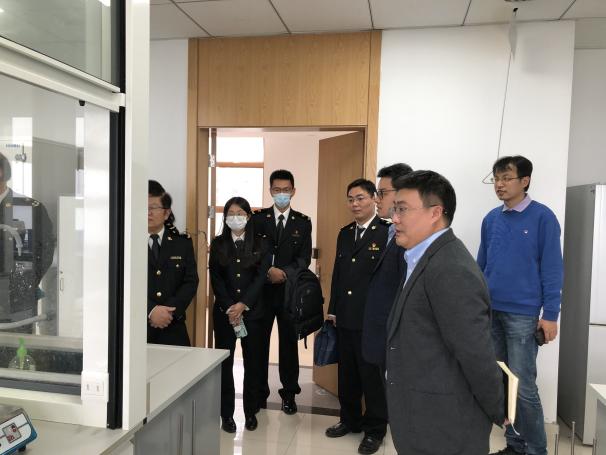 11月2日,上海海关学院检验检疫技术交流部主任钱明、上海浦东海关副关长李平、上海海关机电产品检测技术中心分质量负责人姜敬德等一行6人来万象城官网教学实验中心调研交流。