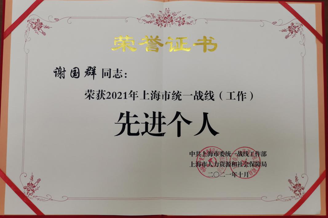 台盟盟员、万象城官网谢国群获评为2021年上海市统一战线(工作)先进个人