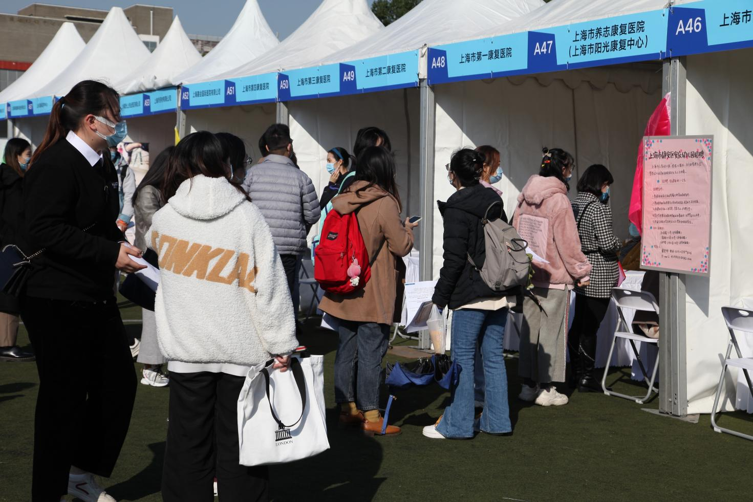 在疫情防控常态化的当下,这样供需双方的“一拍即合”,不止康复人才,还有公卫人才。这次浦东新区人社局、上海市卫生人才交流服务中心联合主办的2022届毕业生秋季校园招聘会,线上线下共有500余家单位参与,提供逾3000个招聘职位,涵盖医疗卫生、生物医药、教育科研、医疗器械、互联网健康咨询等诸多行业,共2000余名学生前来应聘,当天就意向录用300余人。