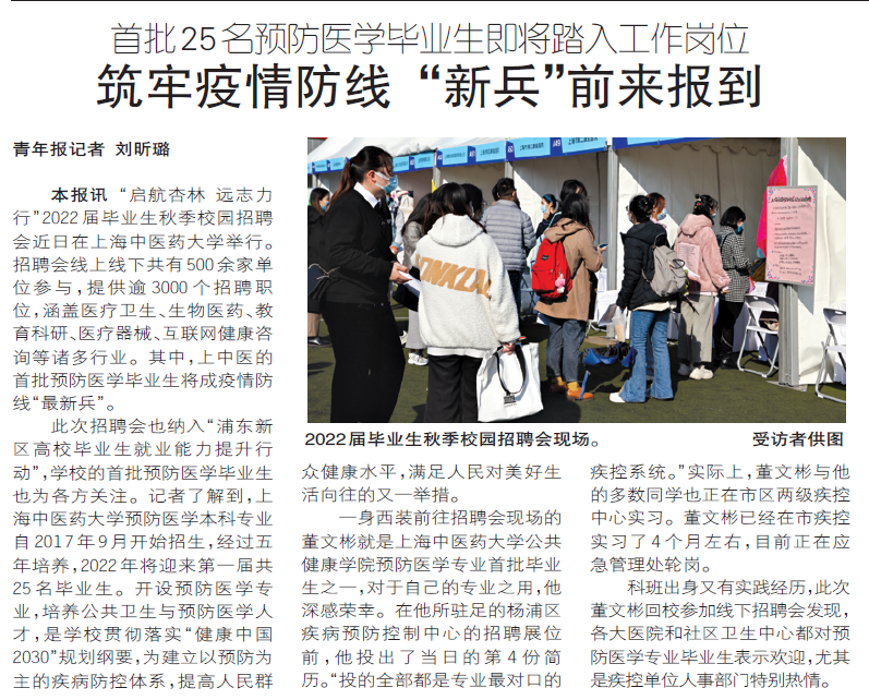 青年报:首批25名预防医学毕业生即将踏入工作岗位 筑牢疫情防线 “新兵”前来报到