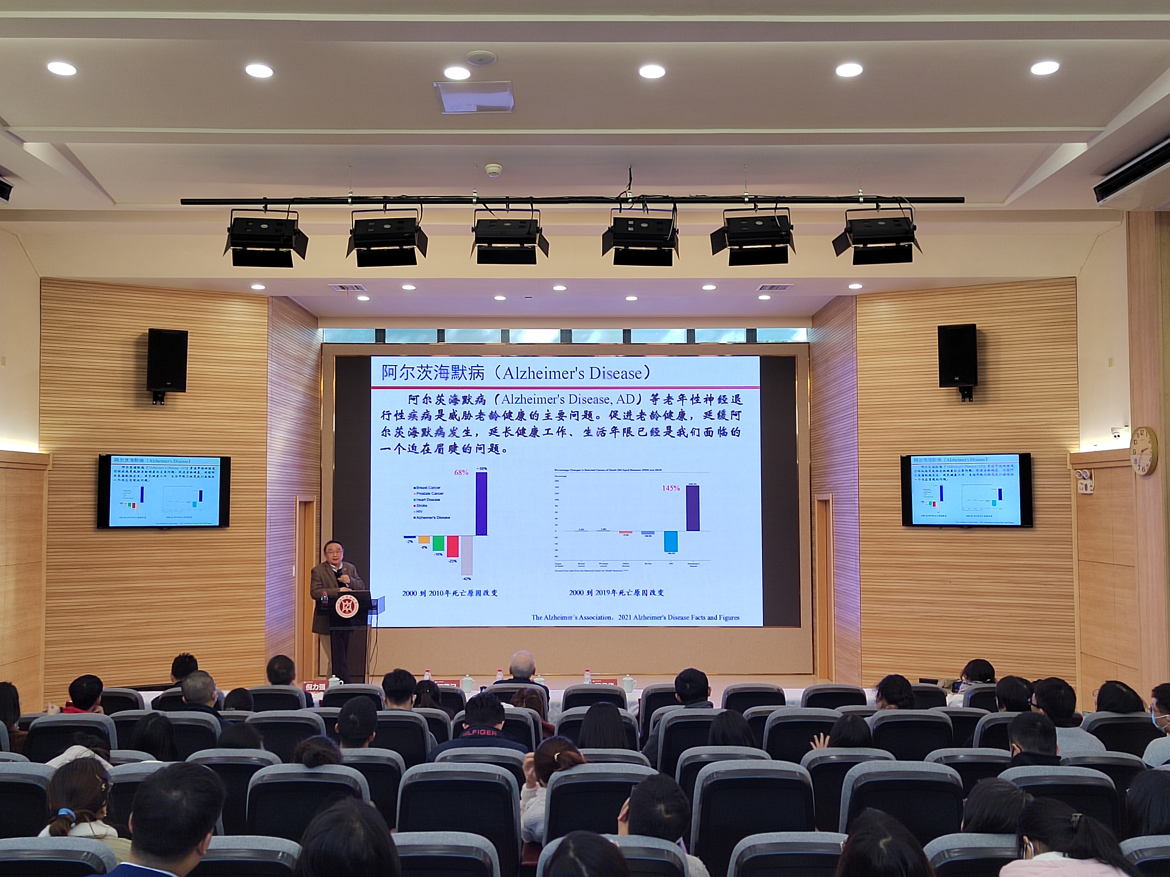 之后,柯尊记就《中西医结合防治阿尔茨海默病及其研究进展》这一主题深入介绍。柯尊记先后在中国科学院上海脑研究所、美国伊利诺伊大学芝加哥校区和康乃尔大学医学院、中国科学院上海营养科学研究所从事中西医结合防治神经退行性疾病的研究,在传统中药中寻找可以延缓老年性神经退行性疾病发展的中药复方和中药来源的生物活性小分子,为防治老年性神经退行性疾病,尤其是阿尔茨海默病提供策略和方法。