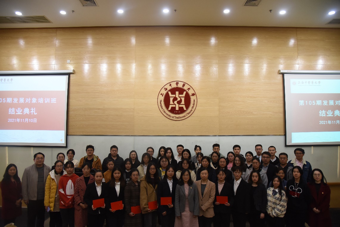 11月10日下午,由公共健康学院分党校承办的校第105期发展对象培训班结业典礼在6301教室举行。公共健康学院党总支副书记干旦峰、校党委组织员徐琳、相关党组织负责人、培训班班主任、指导老师和全体学员参加结业典礼。校党委组织部(统战部、党校)副部长金晶主持典礼。