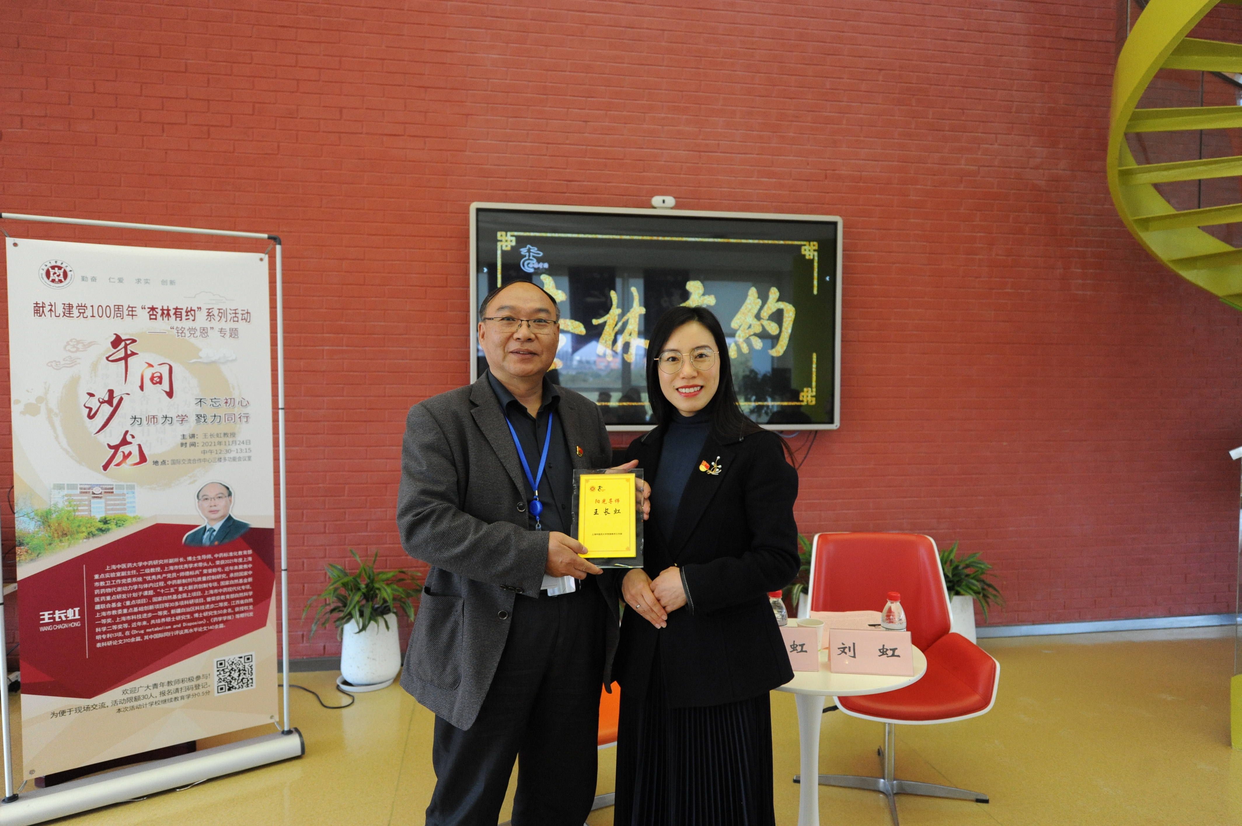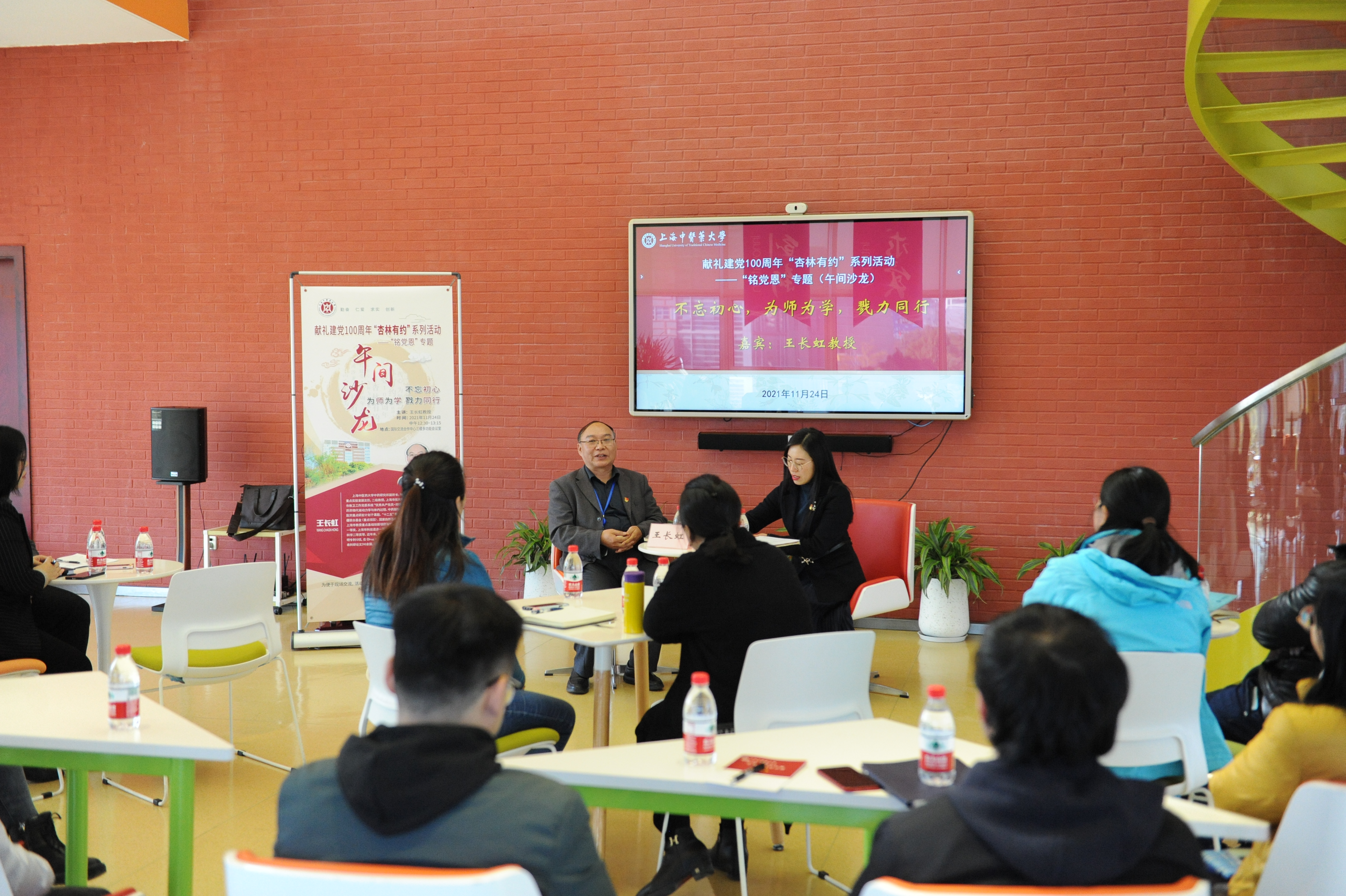 11月24日中午,万象城官网献礼建党100周年“杏林有约”系列活动之“铭党恩”专题午间沙龙在国际交流合作中心三楼多功能厅举行。万象城官网中药研究所副所长王长虹教授受邀和青年教师们分享“为人为师为学”的体会和感悟。活动由校党委教师工作部副部长刘虹主持。