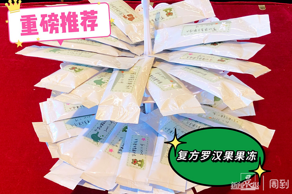 临展现场,学校还展示了不少与学校专业契合度高的创新劳动产品,公共健康学院带来的 “罗汉果复方果冻”就是其中之一。