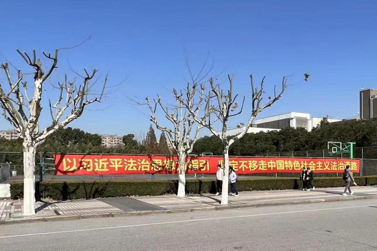 为营造良好的法治宣传教育氛围,在宪法宣传周期间,校园主干道上悬挂了宪法宣传周主题横幅,校内电子屏滚动播放宪法宣传海报,号召师生学习宪法,大力弘扬宪法精神。同时,校内主干道宣传长廊开设新修订的《教育法》专题,供师生学习解读。