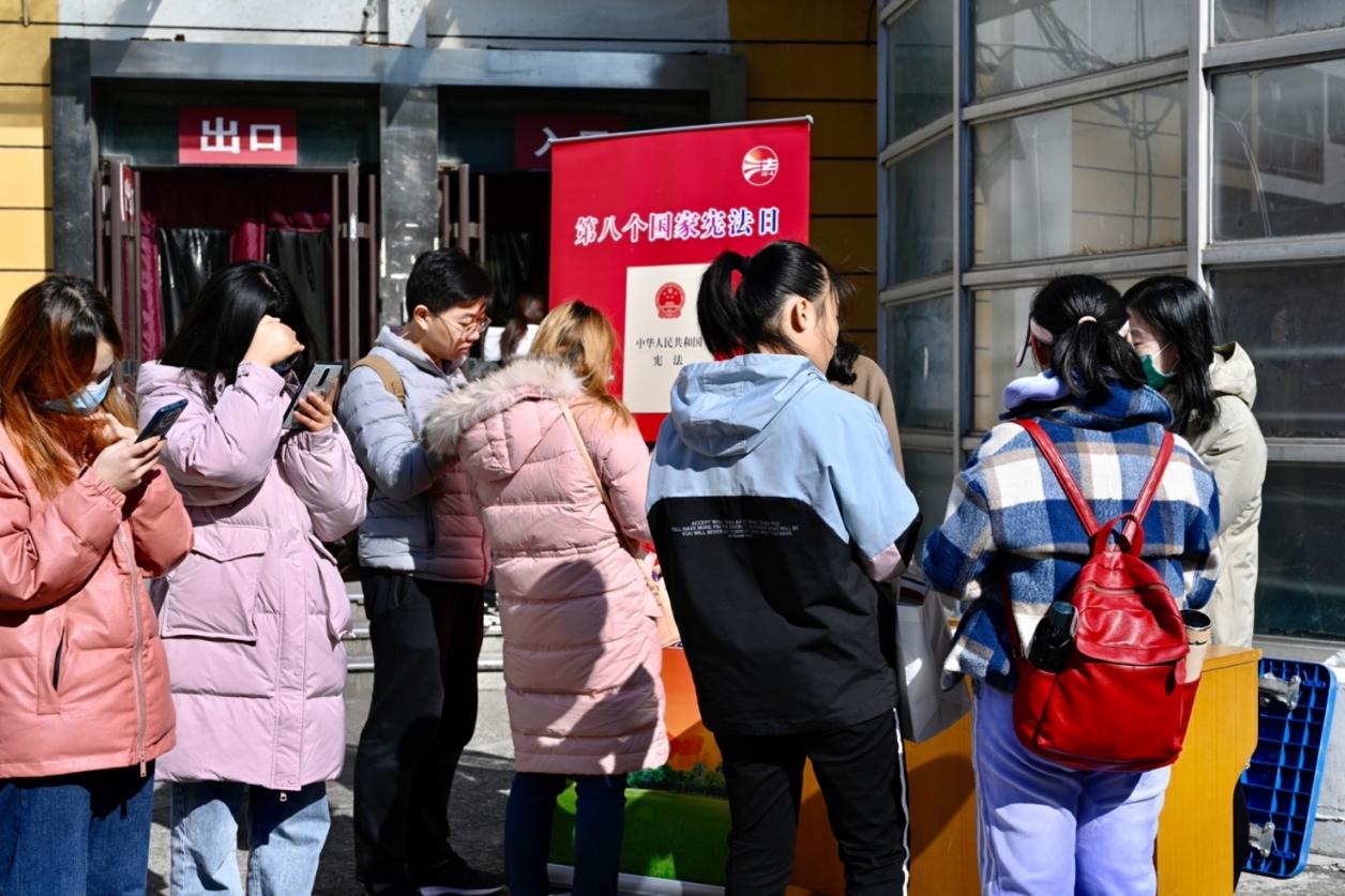 除线上知识竞赛,学校也在学生食堂门口开展线下“宪法宣传周”主题教育,邀请师生现场竞答,参与者热情高涨。对积极参与活动的师生派发《中华人民共和国宪法》读本,增进师生对宪法精神实质的感悟与理解,普及法律常识。