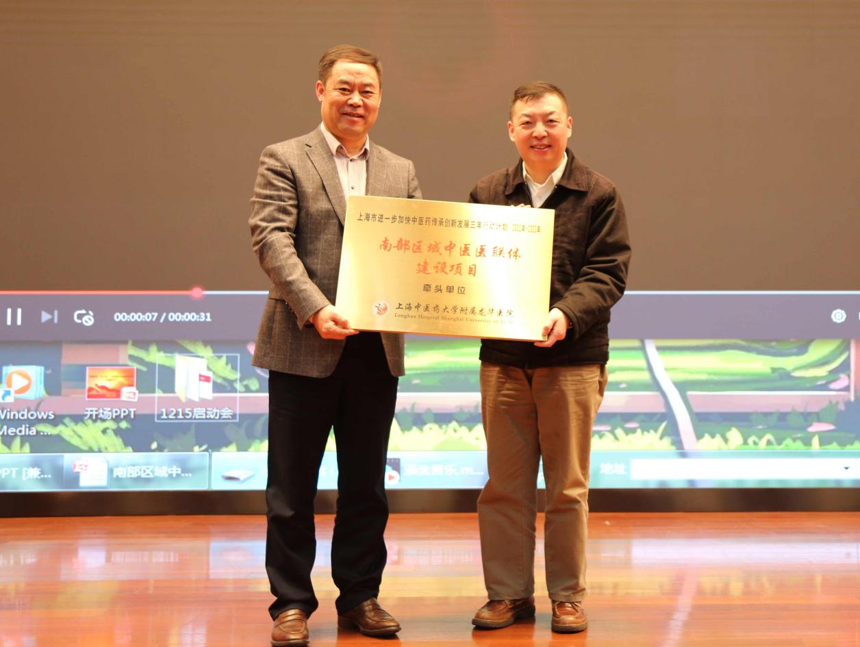 在随后的启动会授牌仪式上,胡鸿毅为龙华医院南部区域中医医联体牵头单位授牌。刘华、王庆华、陈跃来为南部区域中医医联体成员单位授牌。胡鸿毅为龙华医院“中医医院中药临床药学服务规范化建设”项目和“恶性肿瘤中西医结合康复三级网络建设”项目授牌。陈跃来为上海市中药专家季申工作室授牌。同时龙华医院也为2020年度基层骨干医师研修班的优秀学员颁发了正式双聘证书,这批学员受聘之后可以在我院开展多点执业工作。