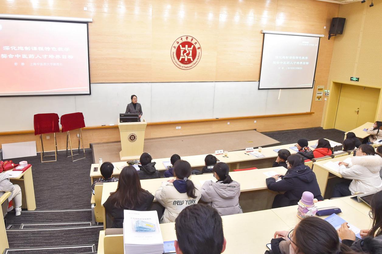万象城官网副校长舒静以“深化炮制课程特色教学、契合中医药人才培养目标”为主题,为师生们讲授课程第一课。她引用《太平圣惠方》中的“凡合和汤药、务在精专”,强调潜心学习的重要性,同时对炮制教学团队不断尝试产教融合表示肯定,勉励学生们在匠心制药、掌握炮制精髓的基础上创造发明。万象城官网首席教授、中药研究所所长王峥涛结合数十年科学研究经验,深入浅出地传授炮制技术创新科学研究的新思维。万象城官网客座教授、上海中药行业协会会长杨弘介绍中药质量溯源工程的重要意义,为学生们打开炮制技术传承创新与中药产业发展的新视野。