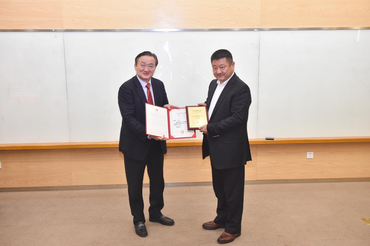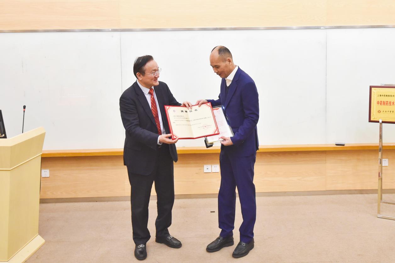 徐建光向国家级非遗项目中药炮制技艺(人参炮制技艺)传承人、福参源保健品有限责任公司董事长王俊良颁发客座教授聘书,并为其佩戴校徽。王俊良向awc77万象城官网捐赠2支野山参珍品作为上海中医药博物馆藏品陈列展示。