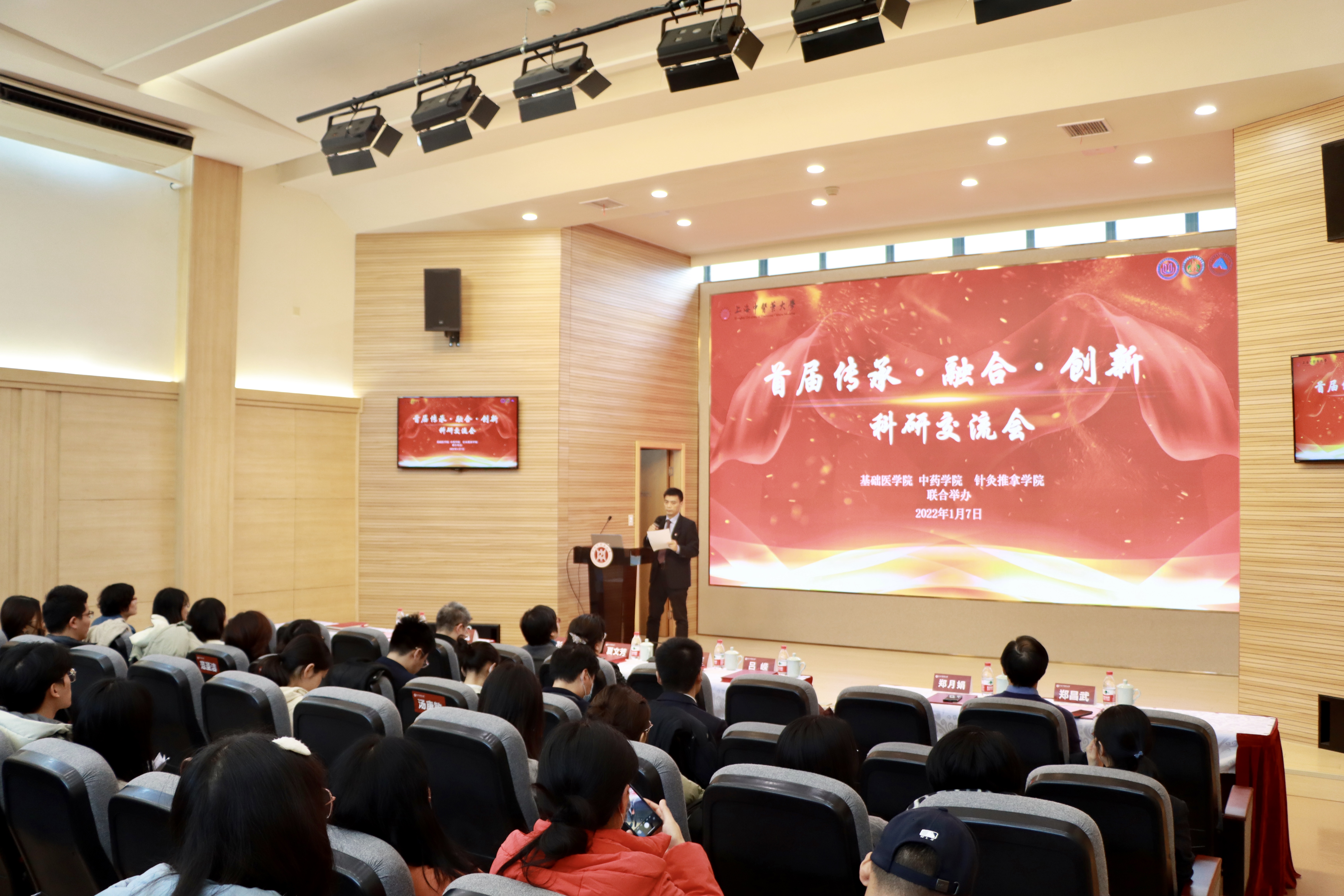 为更好促进学科交融和合作,传承发展中医药事业,由基础医学院、中药学院和针灸推拿学院联合策划,首届“传承·融合·创新”科研交流会于1月7日下午在万象城官网全球合作伙伴中心报告厅举办。基础医学院党委书记夏文芳、院长吕嵘、副院长郑月娟,中药学院党委书记沈岚、院长张彤、副院长郑昌武,针灸推拿学院党总支书记陈秋生、院长赵琛和多个学院的师生共同出席会议。会议由郑月娟主持。