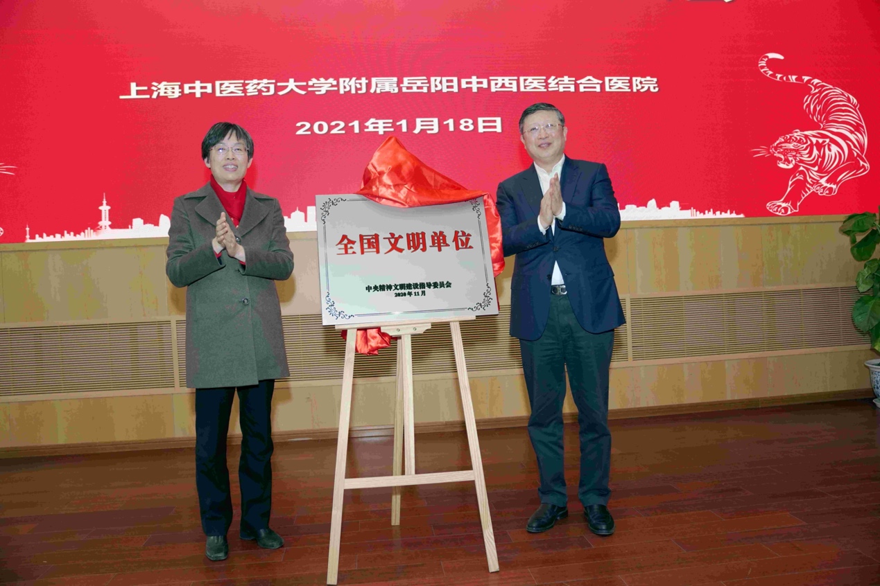 全体岳阳人在医院党委领导下,明目标、定计划、强落实。以习近平新时代中国特色社会主义思想为指导,深化医药卫生体制改革,积极培育和践行社会主义核心价值观,不忘初心、牢记使命,推动医院各项事业发展迈上新台阶。医院于2020年11月被中央文明委授予第六届“全国文明单位”荣誉称号,医院书记郑莉、院长周嘉为“全国文明单位”揭牌。