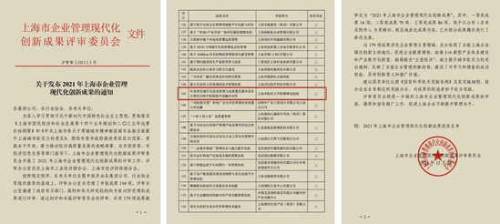 附属曙光医院荣获“2021 年上海市企业管理现代化创新成果”奖项