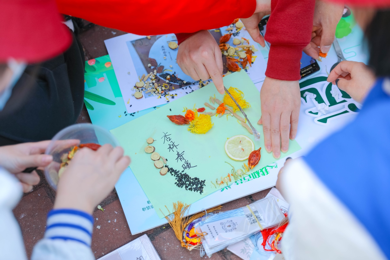 作为纪念与祈愿,活动师生代表一同为“成长之树”贴上“希望之花”与“成长之果”,寓意着在春暖花开的日子里,一同浇灌希望,使“成长之树”开出杏花、结出杏果,遍布美丽校园。完成种植任务后,同学们还参与五禽戏学习、中医药知识问答及中药饮片贴画的活动,在自然中观察和学习,体验春风里劳作之乐。