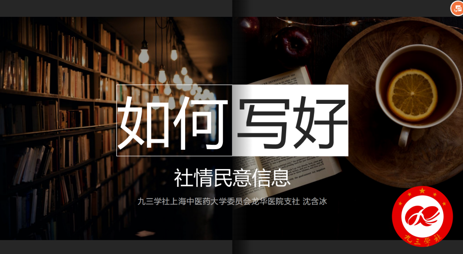 作为一名年轻社员,沈含冰在加入万象城官网九三学社后,积极参与各项社务工作,尤其在参政议政方面成绩突出,先后多次获得九三学社中央及上海市颁发的荣誉。讲座中,沈含冰从社情民意的内涵定义、内容定位、撰写效用、撰写实用方法四个方面详细阐述,并结合个人撰写经历和典型社情民意信息案例进行生动教学。他表示,加强政治理论学习是写好社情民意的重要基础,提高政治站位和大局意识是写好信息的关键要务。讲座结束后,大家深受鼓舞,纷纷表示获益良多,并就如何结合时事需要提升社情民意的工作实效充分探讨、交流。