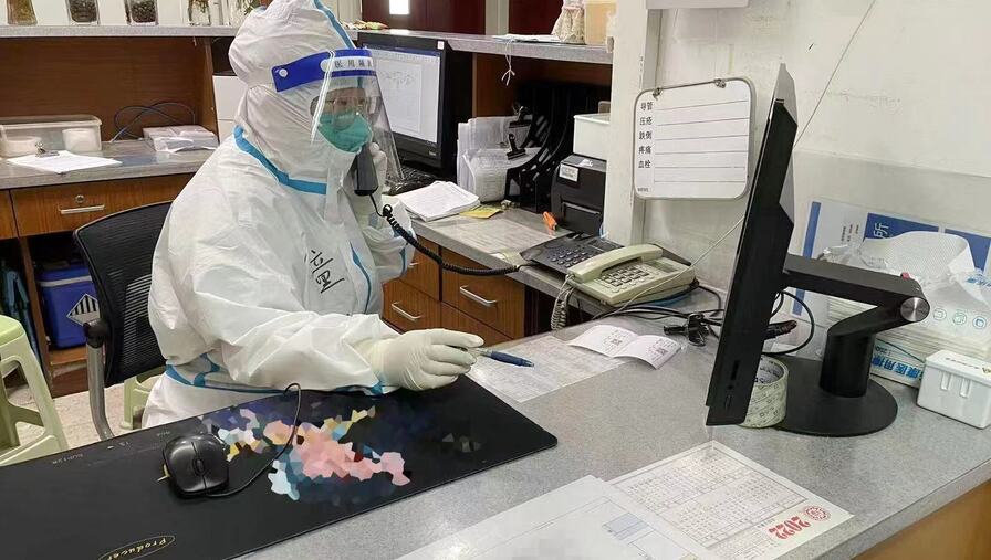 定点医院内,患者的每一个治疗需求医护人员都会严阵以待、全力以赴。60岁的陈女士(化名)三天前因腹痛、腹泻,并持续性加重,一路从方舱医院、区级定点医院于21日凌晨转至我院西院定点医院。