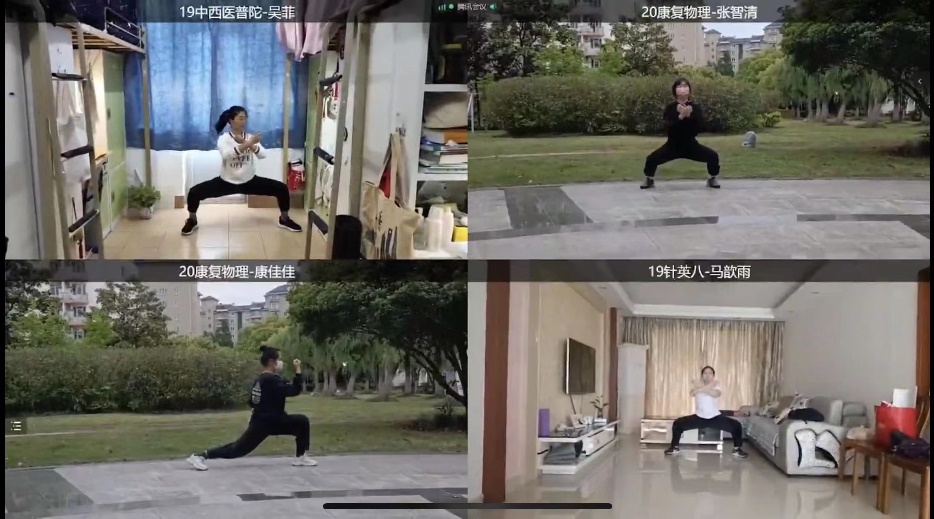 疫情期间,体育部秉承“以体强身,以体育心”的宗旨,实现教会、勤练、常赛的教学目标,探索多元化的线上体育教学模式,每一位教师都全力以赴,借助校课程中心平台、体育部网站及班级微信群等,全程在线远程指导,实时给予学习反馈,让宅在宿舍的学生们正常完成课程学习,在宿舍或过道进行自主锻炼,充分发挥“拳打卧牛之地”传统保健体育的运动特色,帮助学生养成自主锻炼的意识和习惯。