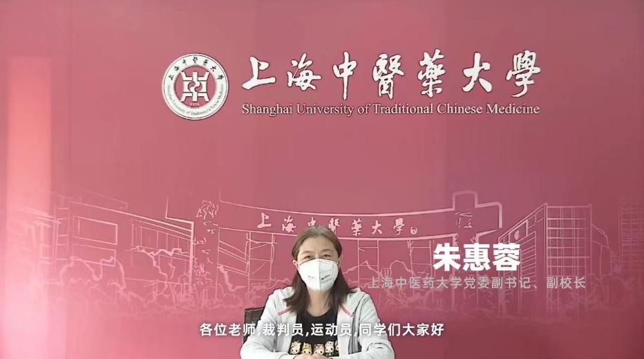 朱惠蓉致开幕词,首先肯定了学生们在抗击疫情期间展现出新时代上中医学子的责任与担当,对体育部秉承“以体强身,以体育心”的宗旨,探索多元化的体育教学模式表示认可,虽然疫情阻挡了大家外出的脚步,但无法阻挡同学们对运动的热情。她强调,体育不只是“身体教育”,更是塑造一个人的品格、保障生命安全,让人生更有质量、更有意义、更有价值的重要教育方式。练习太极拳、八段锦不仅仅是一种健康运动方式,同时还是一种科学、精准、规范的防治新冠肺炎的医学理疗康复手段。传统体育中蕴涵着中华民族自强不息、积极进取的民族精神,继承和发扬我国民族传统体育,对弘扬民族文化、提高学生体质健康水平,具有重要的意义。朱惠蓉激励同学们科学健身、倡导健康生活,打赢疫情防控攻坚战。