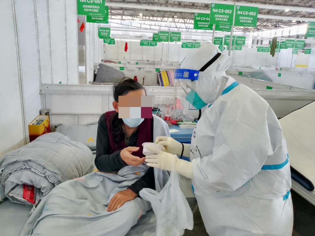 医务人员向长期未转阴患者发放颗粒剂