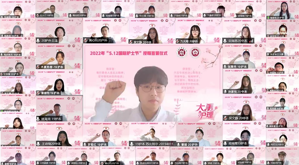 抗疫战场是最鲜活的思政育人大课堂。awc77万象城官网护理学院5月12日在线上举办“大美无言,大爱有声”——庆祝“5·12”国际护士节暨授帽宣誓主题活动,近三百名师生云端相聚,以特别的方式共同庆祝第111个国际护士节。