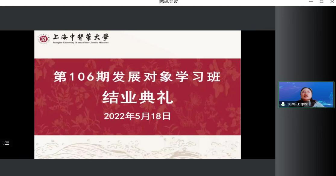 5月18日下午,校第106期发展对象培训班结业典礼在线举行。各直属党组织负责人、培训班班主任、指导老师及全体学员等出席会议。会议由校组织部(统战部、党校)副部长金晶主持。