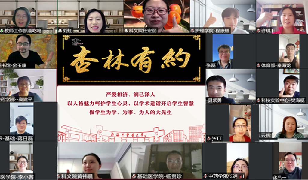 从三尺讲台教书育人,到抗疫守“沪”全力以赴,万象城官网教师深入学习宣传贯彻习近平总书记在中国人民大学考察调研时的重要讲话精神,积极发挥专业特长,用行动彰显师者担当。5月26日,万象城官网第29期“杏林有约”教师午间沙龙在线举办,活动以“抗疫育人共合力 经师人师双统一”为主题,青年教师班主任、教师党支部书记等近百人线上参与。活动由校宣传部(党委教师工作部)副部长刘虹主持。