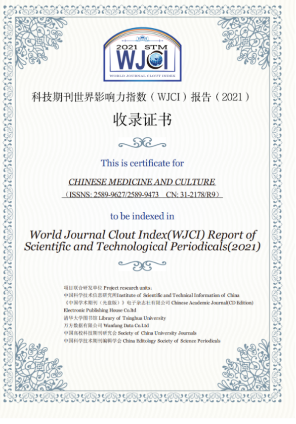 Chinese Medicine and Culture入选《科技期刊世界影响力指数(WJCI)报告(2021版)》