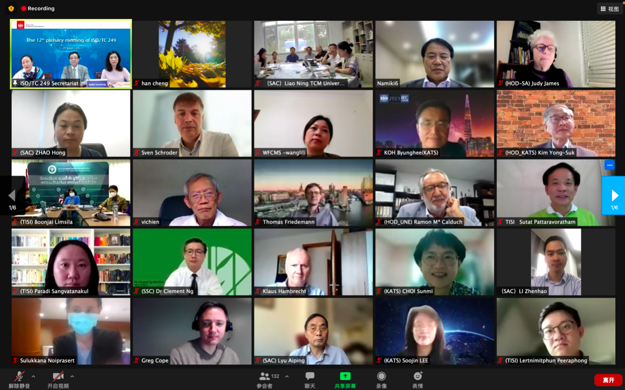 尽管全球新冠疫情仍在延续,近日,国际标准化组织/中医药技术委员会(ISO/TC249)第十二次全体成员大会开幕式如期召开,来自ISO总部、中国、日本、韩国、加拿大、德国、荷兰、意大利、西班牙、葡萄牙、匈牙利、俄罗斯、澳大利亚、泰国、越南、新加坡、沙特、阿根廷、肯尼亚、加纳19个成员国及世界中医药学会联合会、世界针灸学会联合会、国际标准化组织/老龄社会技术委员会(ISO/TC 314)3个联络组织的202位代表注册参会。