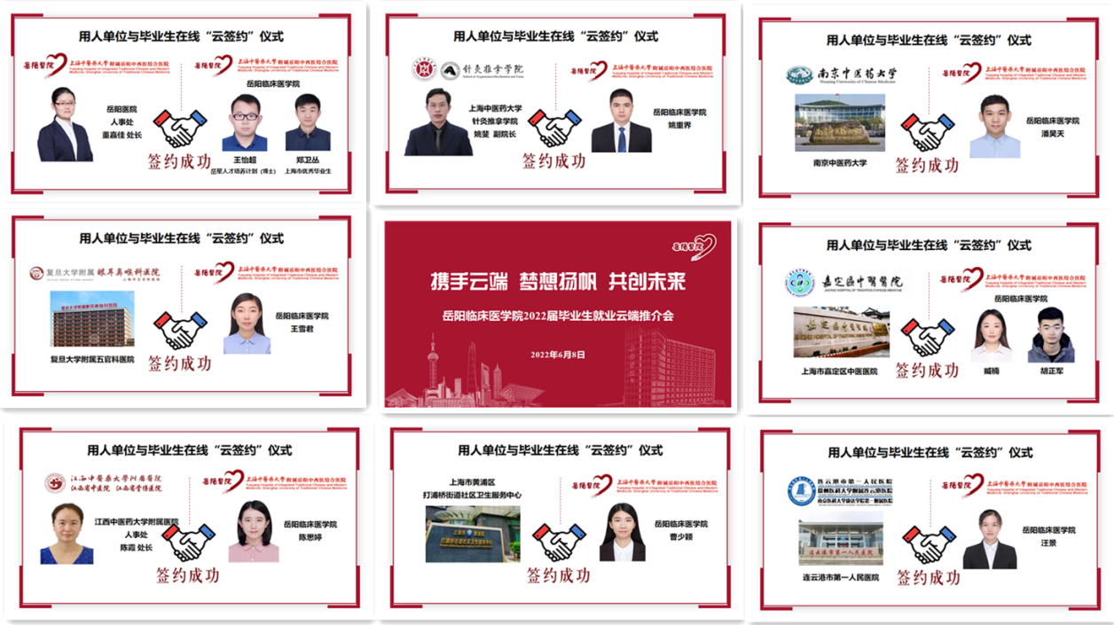 面对当前新冠肺炎疫情形势,岳阳临床医学院周密安排、精心组织,提供就业信息在线推送、就业咨询在线交流,经过前期努力,会议中有8家用人单位代表与毕业生在线进行“云签约”。