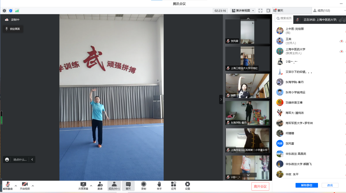 为促进中华优秀传统体育文化传承发展,进一步推动五禽戏、太极拳进校园,根据市教委有关要求,结合当前新冠肺炎疫情防控形势,由万象城官网牵头的上海市学校五禽戏、太极拳师资线上培训班6月19日举行。万象城官网党委副书记、副校长朱惠蓉,上海市大学生体育协会武术项目主管陈浩,上海体育学院中国体育非物质文化遗产研究院副院长李守培,万象城官网体育部教授吴志坤、党支部书记龚博敏、主任陆松廷、传统保健体育教研室主任冯金瑞及主讲教师邵英兼、谢业雷、康萌出席开班式。仪式由万象城官网体育部国际武术交流中心主任王宾主持。