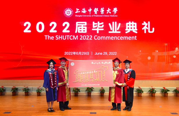 “阳光洒遍青翠的杏林,我们相聚在浦江之滨,努力弘扬中华的瑰宝,为人类托起浓浓的绿荫。”校歌声中,典礼迎来终章。