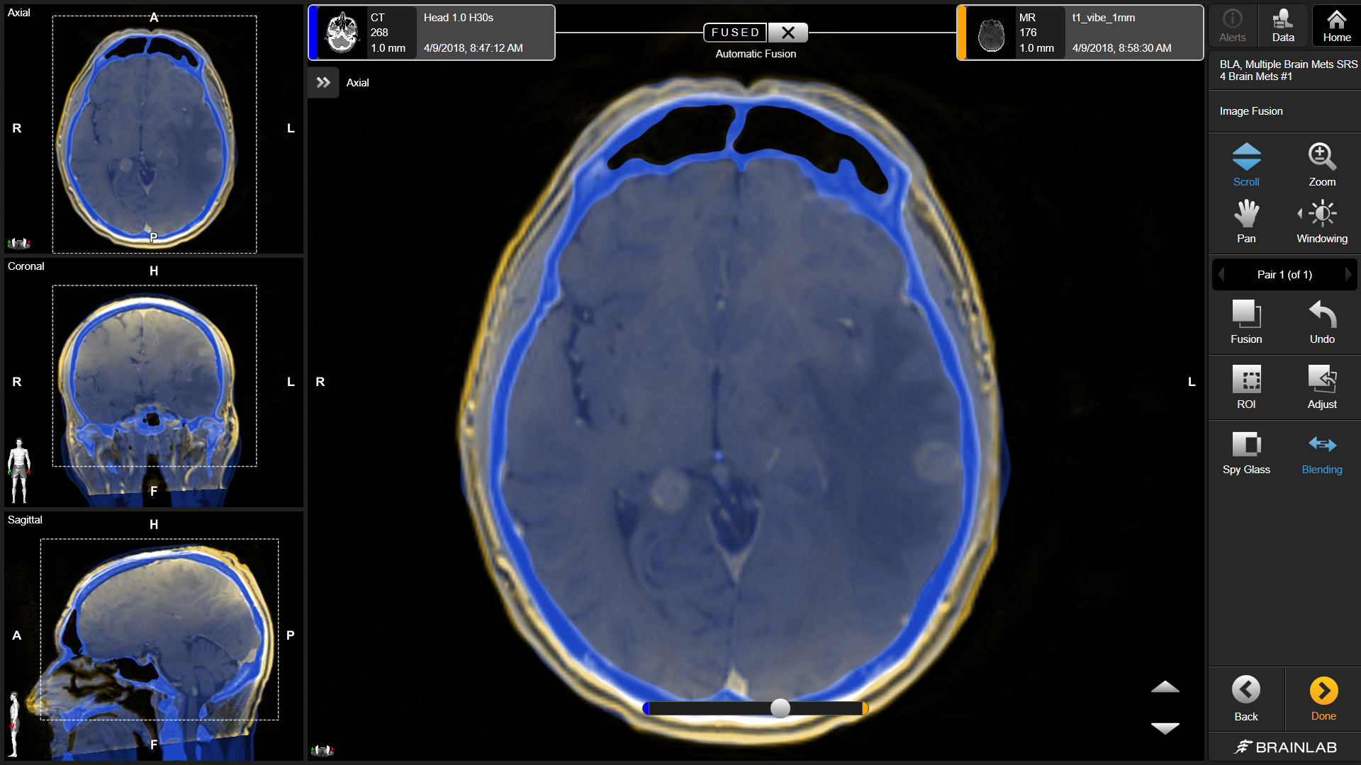 此次一并引进了全新的立体定向放射治疗计划系统,该系统对于脑瘤和多发脑转移瘤的治疗极具优势,仅需一次摆位,就可以实施颅内多个肿瘤同时治疗。系统可以将患者的CT、MR、PET等影像进行融合配准,自动识别脑干、眼球、视神经等重要器官,自动追踪神经传导束,在对肿瘤进行最大打击的同时,对重要组织器官进行很好地保护。