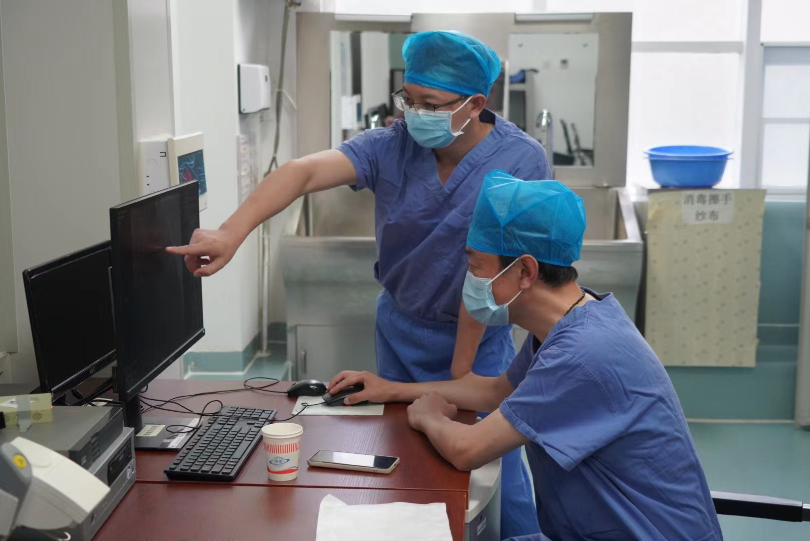 8月27日下午,专家团一到砚山县中医医院,樊民就被岳阳中西医结合医院派出参与中医药对口帮扶工作的援滇医疗队员、医院心内科主治医师樊荣拉进了砚山县中医医院介入室,穿上了铅衣。介入室内,砚山县68岁的陆老伯躺在手术台上。他已有高血压病史13年了,但一直未曾规律服药,在6个月前突然出现反复心悸、胸闷、气促的症状,后经检查诊断为“冠心病 三支病变 稳定型心绞痛”。当看到砚山县中医医院的微信公众号介绍了“新民健康大讲堂”活动后,他向医院提出了请求:“能让上海的大专家给我做手术吗?”